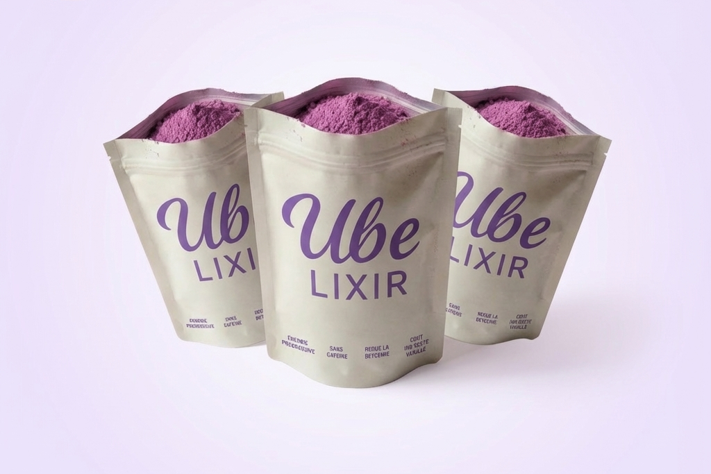 Ubélixir est une poudre d’ube (igname violet des Philippines) qui permet de préparer instantanément un latte violet onctueux, naturel et sans caféine.